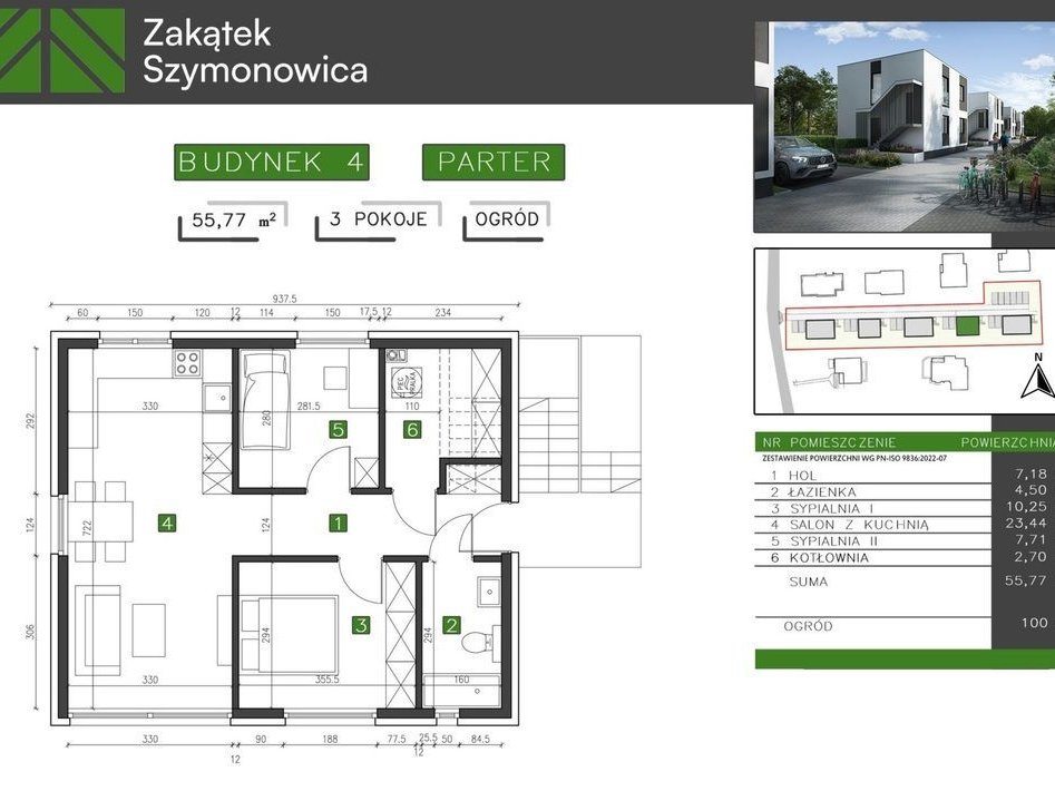 MIESZKANIE B4/1 – PARTERPowierzchnia: 55,77 m²