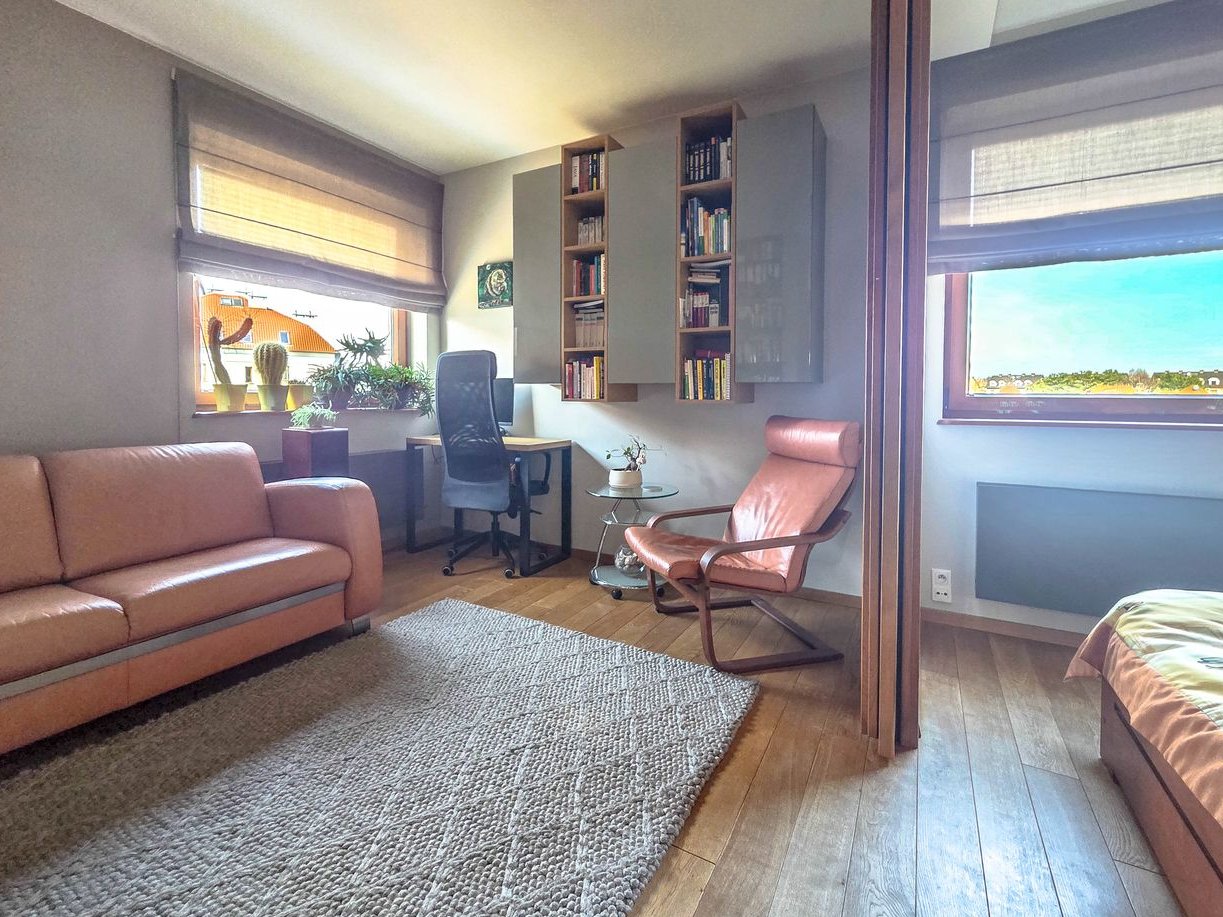 -2 sypialni, które po otwarciu drzwi przesuwnych tworzą wspólną przestrzeń,