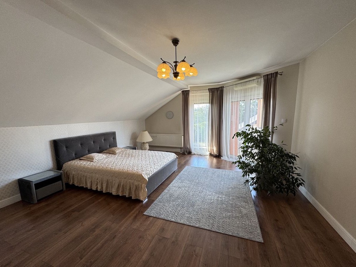 1. Wielka sypialnia z klimatyzacją oraz tarasem z widokiem na ogród.