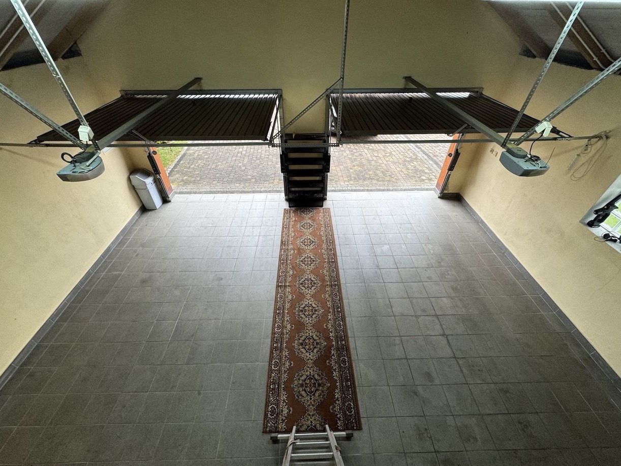 Wybudowany w 2009r. Budynek garażu ma powierzchnię 56m2 z dwoma bramami wjazdowymi oraz zapleczem warsztatowym. Nad częścią warsztatową – miejsce do przechowywania. Przy garażu drewutnia i miejsce gospodarcze.