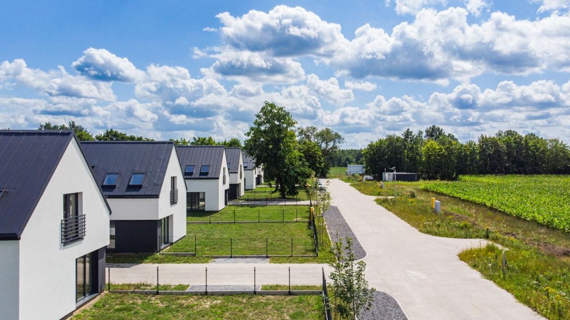 Osiedle to 24 domy w spójnej, estetycznej zabudowie, gdzie każdy budynek łączy się z sąsiednim jedynie garażem - co daje poczucie prywatności właściwej dla domów wolnostojących.