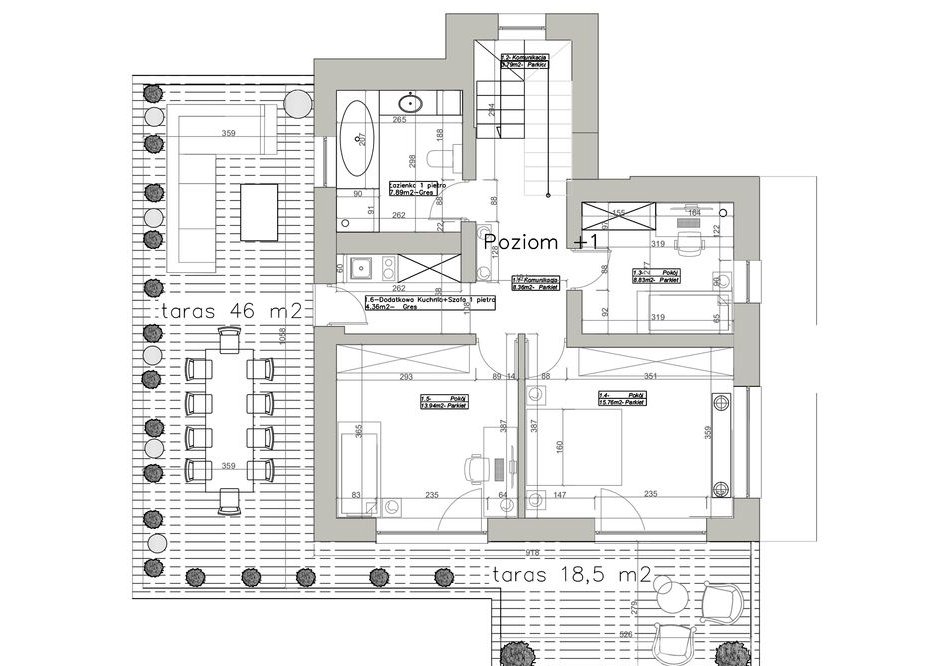 Szukasz domu w spokojnej okolicy, ale jednak blisko centrum. Zapraszamy do zapoznania się z tą nietuzinkową ofertą. Dom po gruntownej przebudowie został podzielony na 2 niezależne apartamenty, jeden z nich jest już zamieszkały. Ty możesz zająć ten drugi składający się z przestronnego parteru z wyjściem do ogrodu (duże okno typu HS). Masz do dyspozycji przestrzeń do własnej aranżacji. Aczkolwiek przewidziany jest tam salon, jadalnia, kuchnia, łazienka z prysznicem, pomieszczenie techniczne z pralnią oraz garaż. Na piętrze 3 sypialnie, garderoba/aneks kuchenny, duża łazienka z miejscem na prysznic i wannę oraz 2 tarasy o powierzchni 18,5m2 i 46m2. Zapraszamy na prezentację, poczuj te miejsce. Może właśnie to Ty będziesz mógł pić kawę na tym pięknym tarasie z widokiem na zachód słońca.