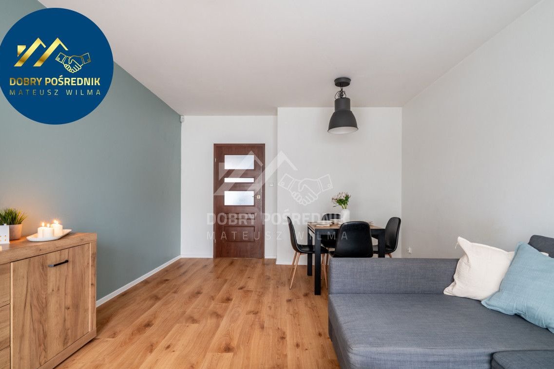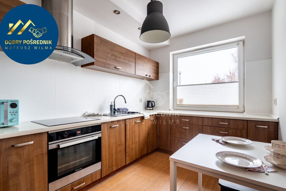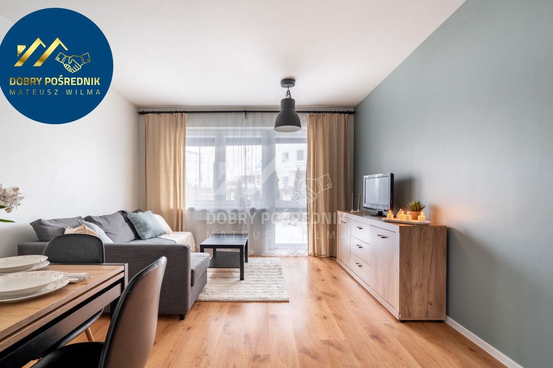 Mieszkanie o powierzchni 50,80 m² znajduję się na parterze czteropiętrowego budynku z 2010 roku. Składa się z sypialni, pokoju dziennego z wyjściem na ogród, o południowej ekspozycji, łazienki, oddzielnej kuchni oraz korytarza. Meble w zabudowie. Praktyczny układ. Słoneczna ekspozycja. Lokal gotowy do zamieszkania. Wolny od ręki.