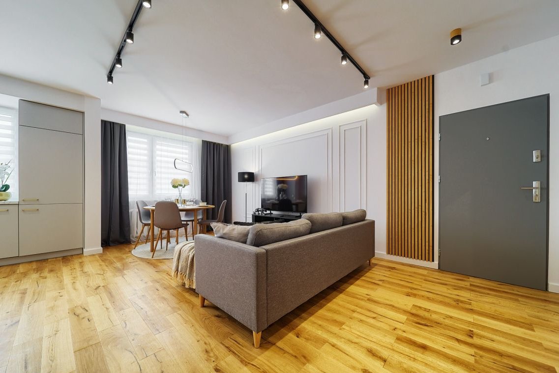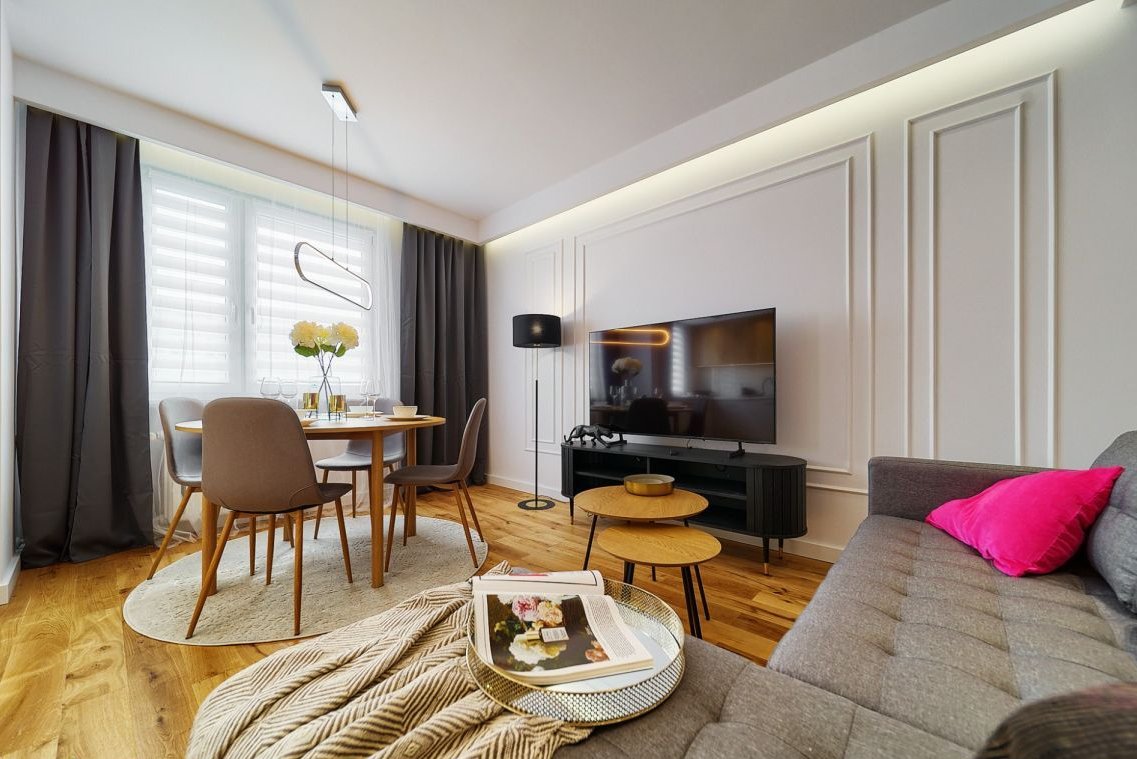 To mieszkanie nie wymaga żadnych nakładów finansowych ani uciążliwych remontów. Zostało wykończone z dbałością o detale i przy użyciu wysokiej klasy materiałów. Wnętrza są jasne dzięki dwustronnej ekspozycji okien, a nowoczesna stylistyka sprawia, że czujemy się tu przytulnie od razu po wejściu. Co najważniejsze, mieszkanie sprzedawane jest jako w pełni umeblowane - wszystkie meble oraz elementy wyposażenia widoczne podczas prezentacji pozostają w cenie nieruchomości.