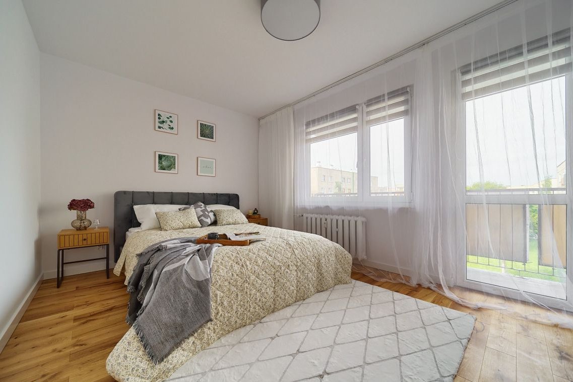 Wnętrze o powierzchni niemal 64 metrów zostało zaprojektowane z myślą o maksymalnej wygodzie rodziny. Sercem mieszkania jest przestronny salon połączony z aneksem kuchennym, co tworzy otwartą strefę dzienną sprzyjającą wspólnemu spędzaniu czasu. Oprócz tego do dyspozycji są dwie ustawne sypialnie - jedna z nich posiada wyjście na balkon, który jest idealnym miejscem na poranną kawę. Prawdziwym hitem tego układu jest dodatkowe pomieszczenie, które świetnie sprawdzi się jako pojemna garderoba lub domowe biuro - to rozwiązanie, którego brakuje w większości mieszkań w blokach. Komfortu dopełnia fakt, że łazienka i toaleta stanowią dwa osobne pomieszczenia.