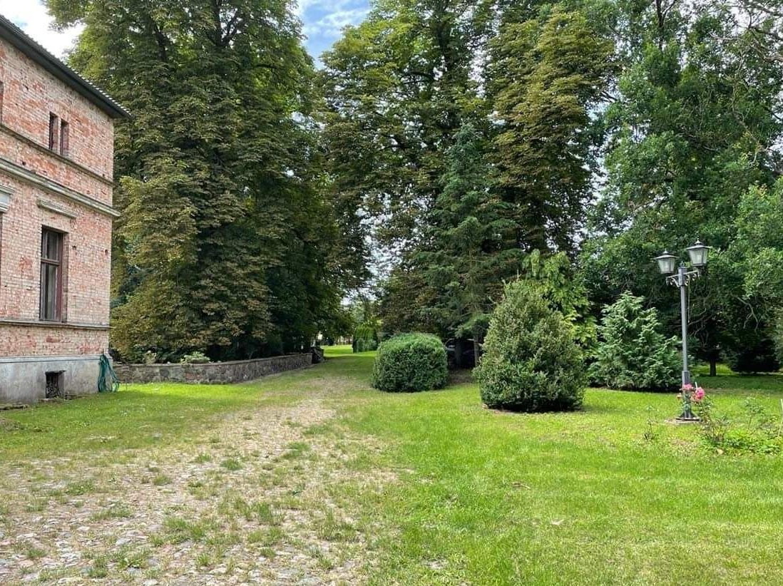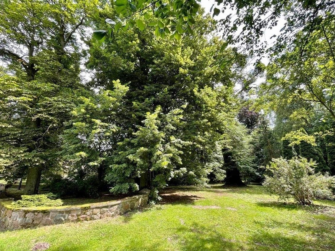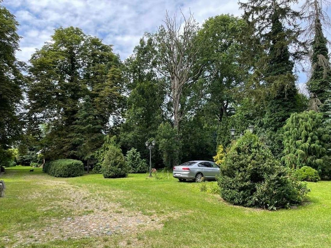 W części niezabudowanej teren stanowi historyczne założenie parkowe ze starym drzewostanem (część drzew oznaczona jest jako pomniki przyrody) oraz drzewostanem z późniejszego okresu (park z 1. połowy XIX wieku). Drzewostan składa się m.in. z wiązów szypułkowych, kasztanowców białych, lip drobnolistnych, klonów pospolitych, buków, grabów, dębów, buków czerwonych, a także z kilku tysięcy zasadzeń dokonanych w ostatnich 20 latach. Park zapewnia intymność i kapitalnie separuje dom od sąsiednich zabudowań. Na nieruchomości znajdują się trzy stawy, niewielkie sady użytkowe oraz małe obiekty infrastruktury jak kamienne mury okalające stanowiska drzew. Do nieruchomości prowadzi brukowana kamieniem droga.