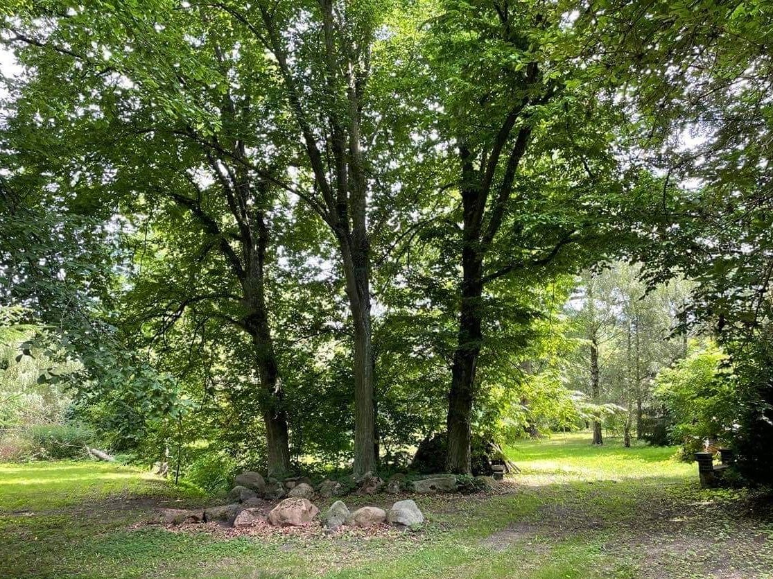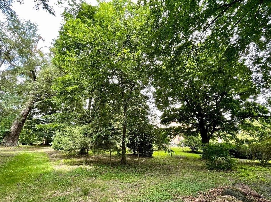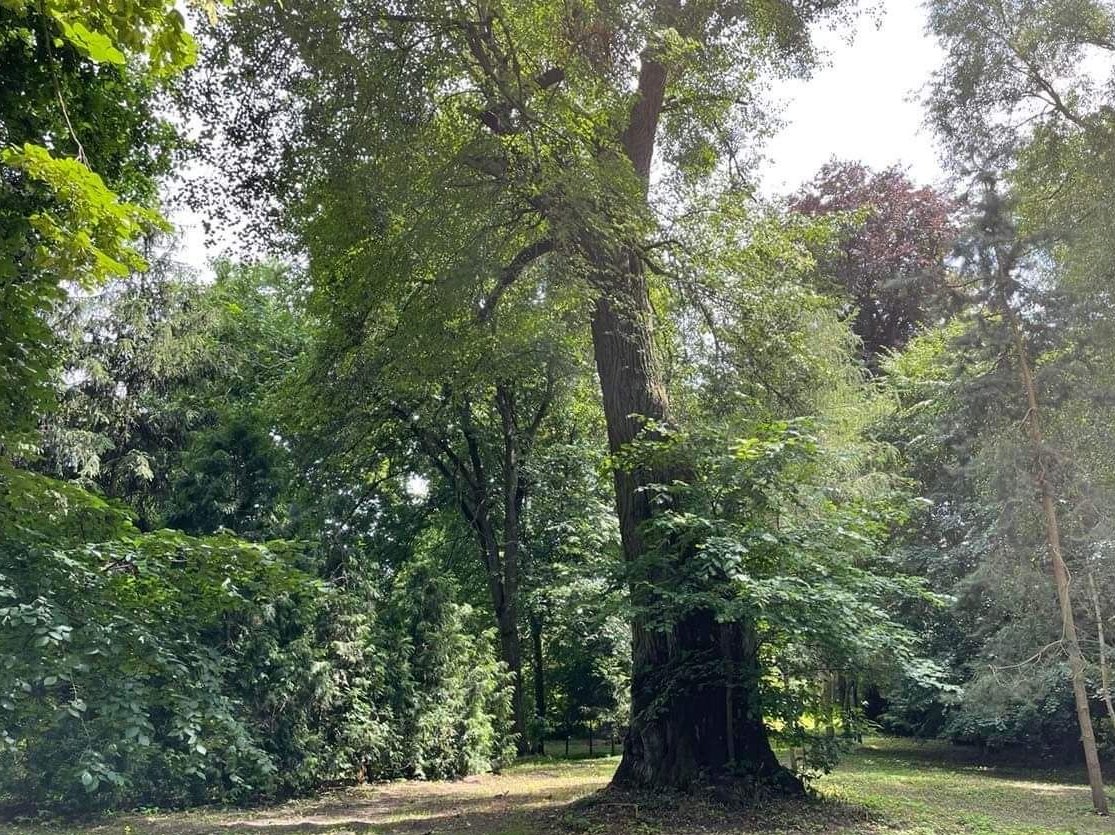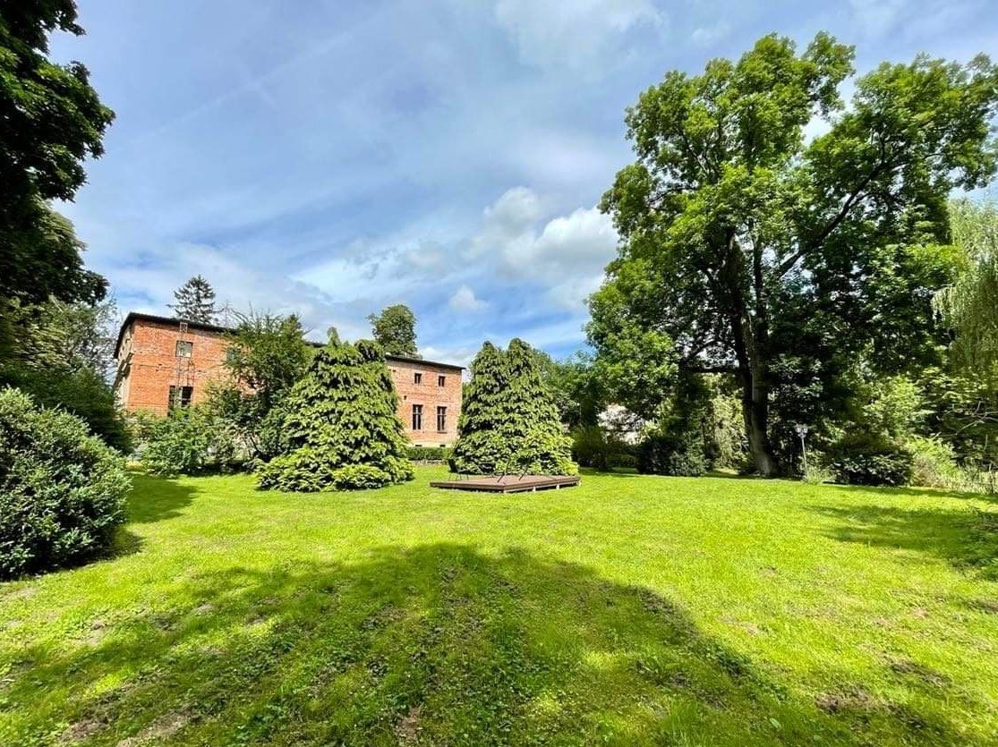 W części niezabudowanej teren stanowi historyczne założenie parkowe ze starym drzewostanem (część drzew oznaczona jest jako pomniki przyrody) oraz drzewostanem z późniejszego okresu (park z 1. połowy XIX wieku). Drzewostan składa się m.in. z wiązów szypułkowych, kasztanowców białych, lip drobnolistnych, klonów pospolitych, buków, grabów, dębów, buków czerwonych, a także z kilku tysięcy zasadzeń dokonanych w ostatnich 20 latach. Park zapewnia intymność i kapitalnie separuje dom od sąsiednich zabudowań. Na nieruchomości znajdują się trzy stawy, niewielkie sady użytkowe oraz małe obiekty infrastruktury jak kamienne mury okalające stanowiska drzew. Do nieruchomości prowadzi brukowana kamieniem droga.